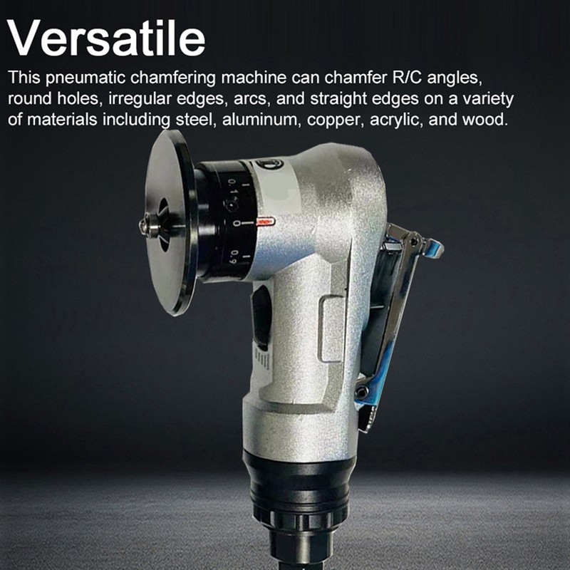 Versatile: This pneumatic chamfering machine can chamfer R/C angles, round holes, irregular edges, arcs, and straight edges on a variety of materials including steel, aluminum, copper, acrylic, and wood.