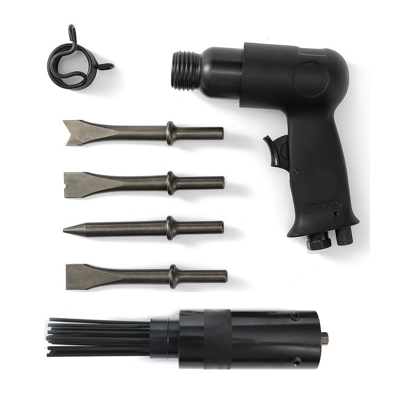 Pneumatic Needle Scaler 19 Needles and Air Hammer Pistol 4 Chisels 2 in 1