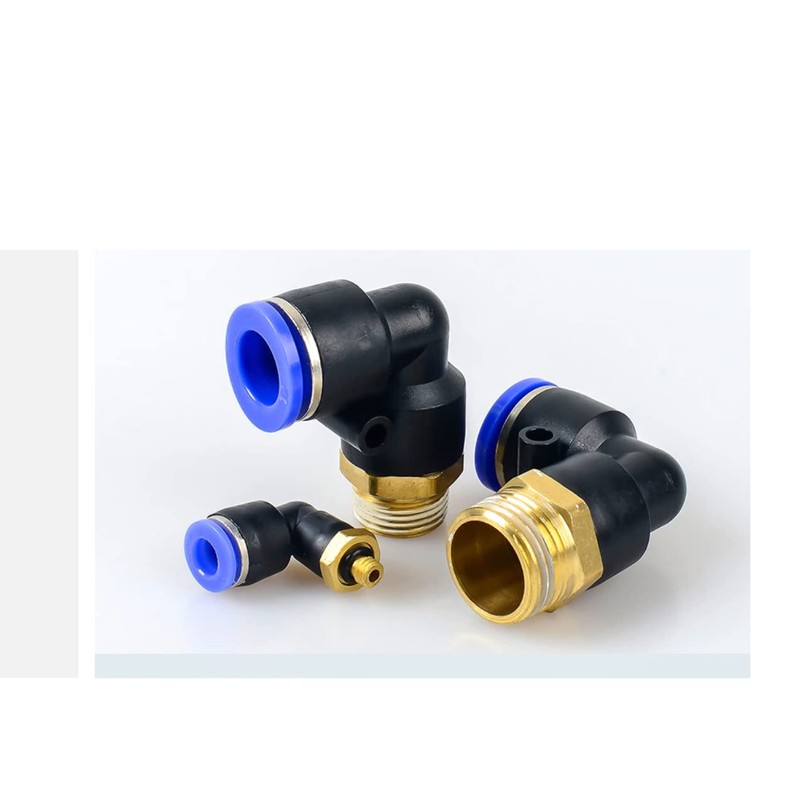 - Quality and free: the pneumatic plug-in connections with 90° angle are made of high-quality materials. Body: brass, release ring: PA 66, seal: NBR, stainless steel retaining claws. For a reliable and secure connection of your compressed air line.