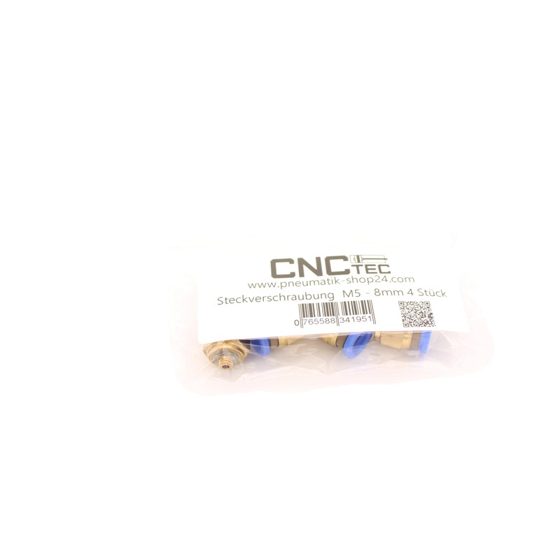 Pneumatic Push-in Fitting M5 to 8 mm IQS, Pack of 4 Push In Compressed Air Connection/Plug Connection