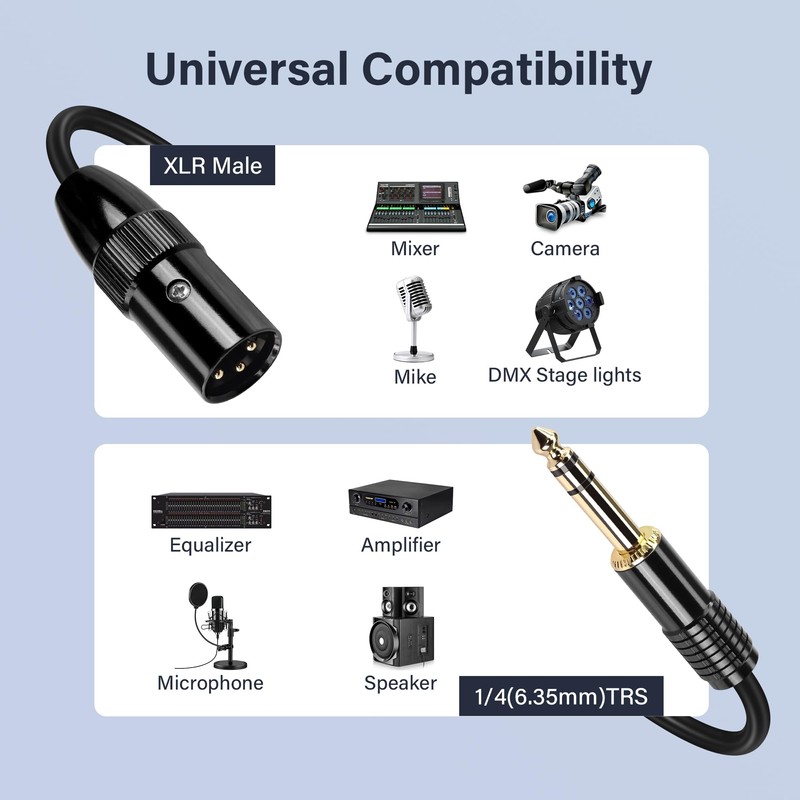 - XLR to 6.35mm connector cable is made of oxygen-free copper to provide maximum conductivity and durability; minimising signal interference and ensuring stable transmission.