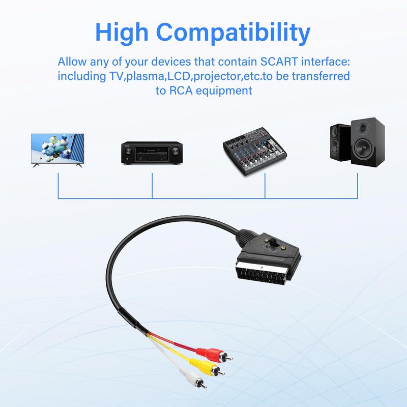 PNGKNYOCN Scart to 3 RCA Adapter Cable, Switchable In Out Scart Male to Composite Audio/Video Converter Cable (0.5 m)