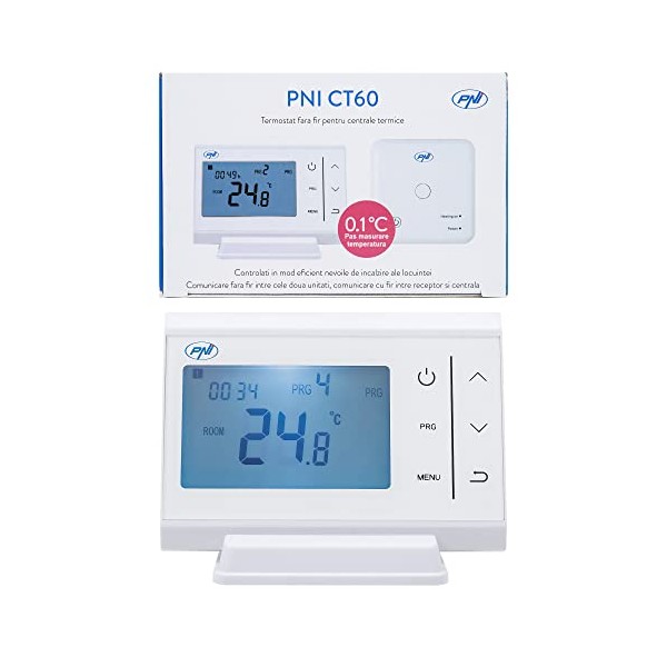 PNI Wireless Thermostat CT60 for The Central Heating System, Hysteresis 0.1 Degrees, White, 120 X 25 X 85 mm