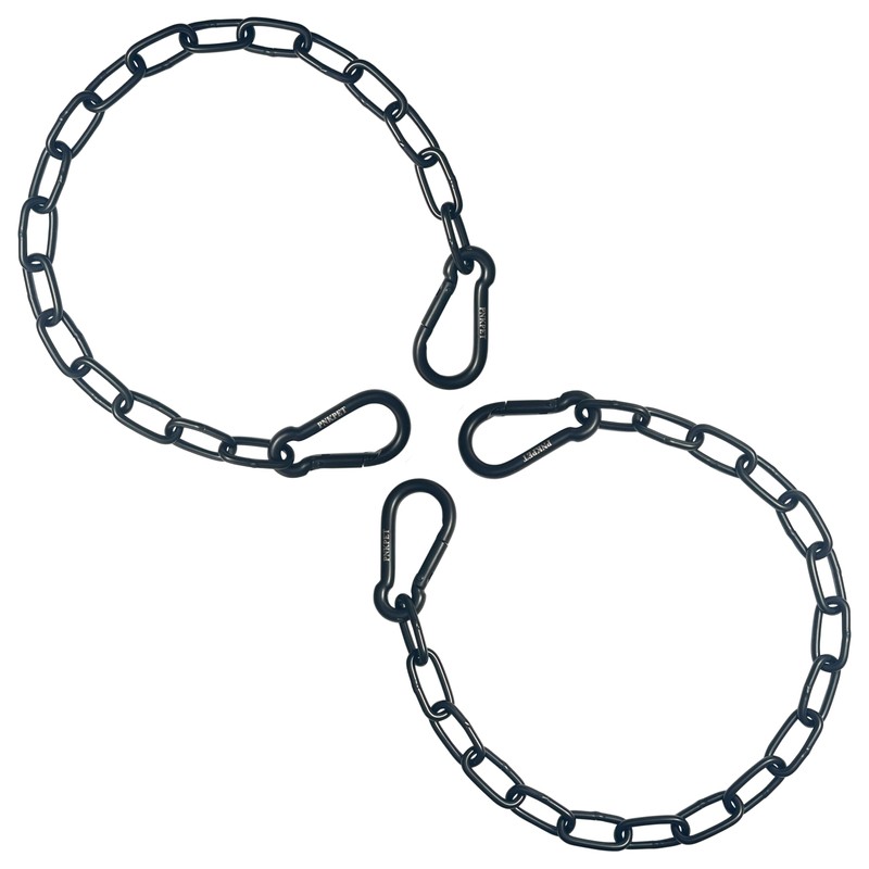 - Shopping Guide - The product includes two 32-inch long stainless steel chain and four M7 carabiners. The color is black, and it weighs 1.42 pounds. Please feel free to contact us if there is any missing product accessories or any problems in use.