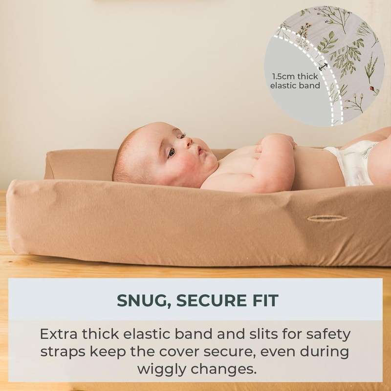 • SOFT, STYLISH, AND SAFE: Experience the luxurious softness and gentle stretch of our premium changing pad covers. Crafted from ALWAYSOFT, our custom-milled blend of 96% combed ringspun cotton and 4% spandex, these covers provide a snug and secure fit. The elastic band wraps entirely around the changing pad, and thoughtful slits are included for safety straps, ensuring the cover stays securely in place, even during wiggly diaper changes.