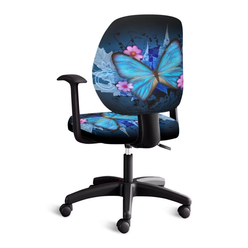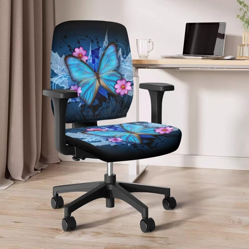Poceacles Office Chair Cover Blue Butterfly Floral Print Stretchable Computer Chair Covers Slipcover for Office Chair Desk Chair Seat Cushion Protectors