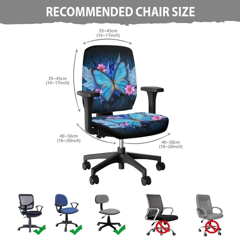 Poceacles Office Chair Cover Blue Butterfly Floral Print Stretchable Computer Chair Covers Slipcover for Office Chair Desk Chair Seat Cushion Protectors