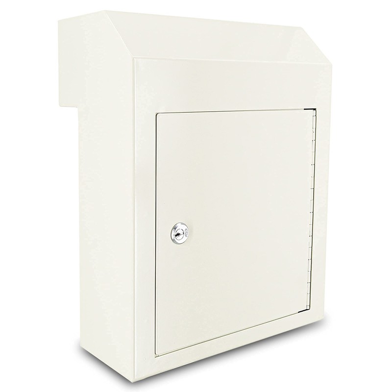 - REAR DOOR WITH LOCK: The drop box can only be opened in the back with a designated key. The mail slot on the front is only designed for receiving items and cannot be pried open.