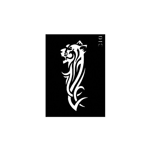 • Pochoir pour le Corps format 3'' X 4'' #310 Lion. Réalisez de magnifiques tattoos temporaires à l'aérographe avec ce pochoir ! Réutilisable.