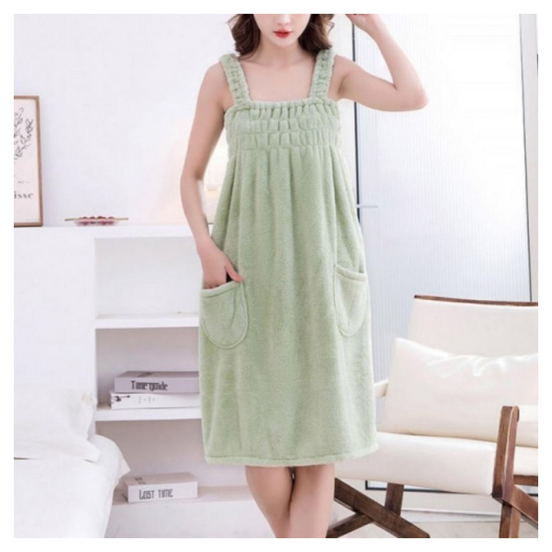 Pocket apron tank top one piece banding soft women shower gown blue
