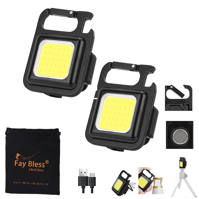 - FLASHLIGHTS HIGH LUMENS --- This keychain flashlight can emit 800lumens lights at maximum. It provides a bright light with a wide-angle. The large COB Technical LED allows this light to be used as a small work light and emergency light.