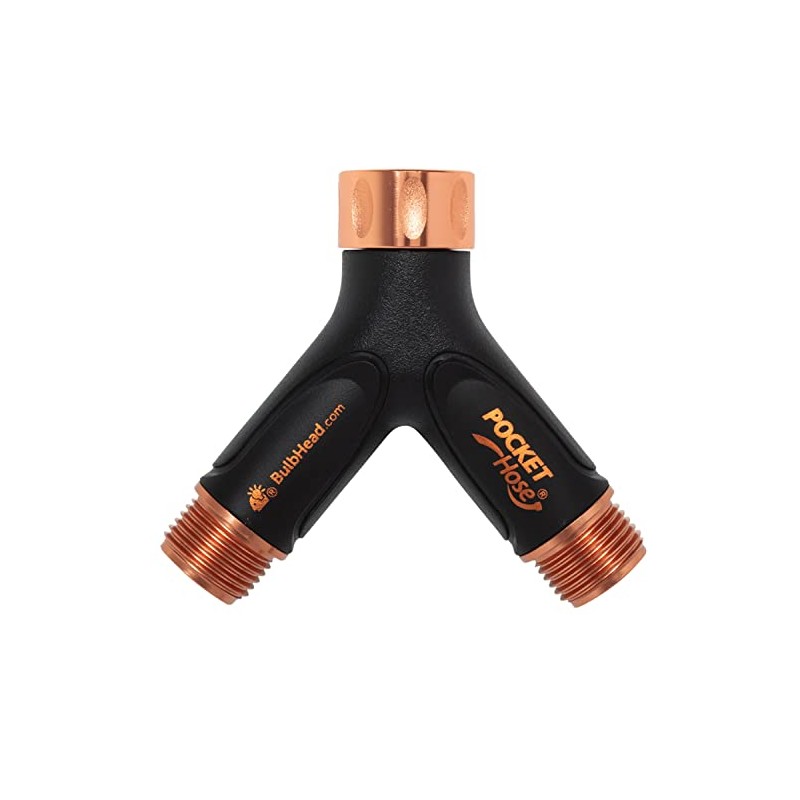 Pocket Hose Copper Bullet 2-Way Hose Splitter, Heavy-Duty, AS-SEEN-ON-TV, Y-Shaped, Leak-Proof, Connect Two Hoses at Once, Lead-Free, Independent On/Off Switches, Fits Standard Faucets & Garden Hoses