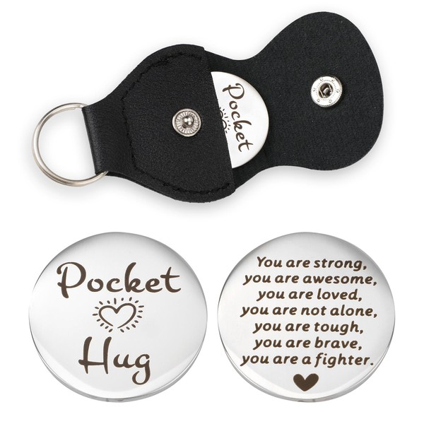 Pocket Hug Token, Double Sided Pocket Hug Coin keychain with Leather Case Stainless Steel Pocket Hug Decoration Gift for Birthday Festivals Thanksgiving Christmas