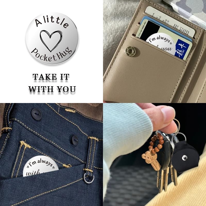 - Long Distance Gifts for Daughter Son Mom Dad: This pocket keychain for women men is consists of 1 hug token and 1 storage token leather keyring, the mother daughter keychain is happy birthday gifts for men women granddaughter grandaon, expressing love and care for your dear ones, graduation gifts for son daughter best friend, farewell gifts for women friends, happy retirement gifts for women mom dad mother father