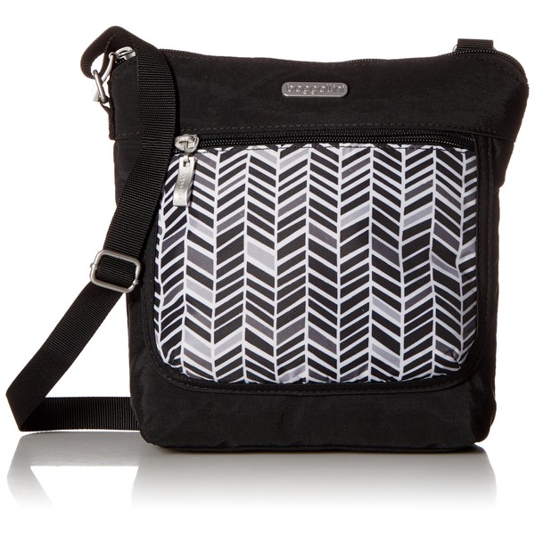 Pocket Medium Crossbody Cross Body, BLACK & GREY CHEVRON, One Size