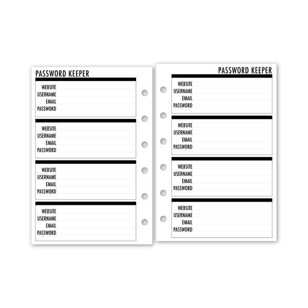Never forget your passwords again and take the hassle out of trying to find that little piece of paper where you wrote down yet another password. With our Password Keeper planner inserts, your important information will be immediately at your fingertips. You can spend all the extra time you earned looking for those keys you misplaced.