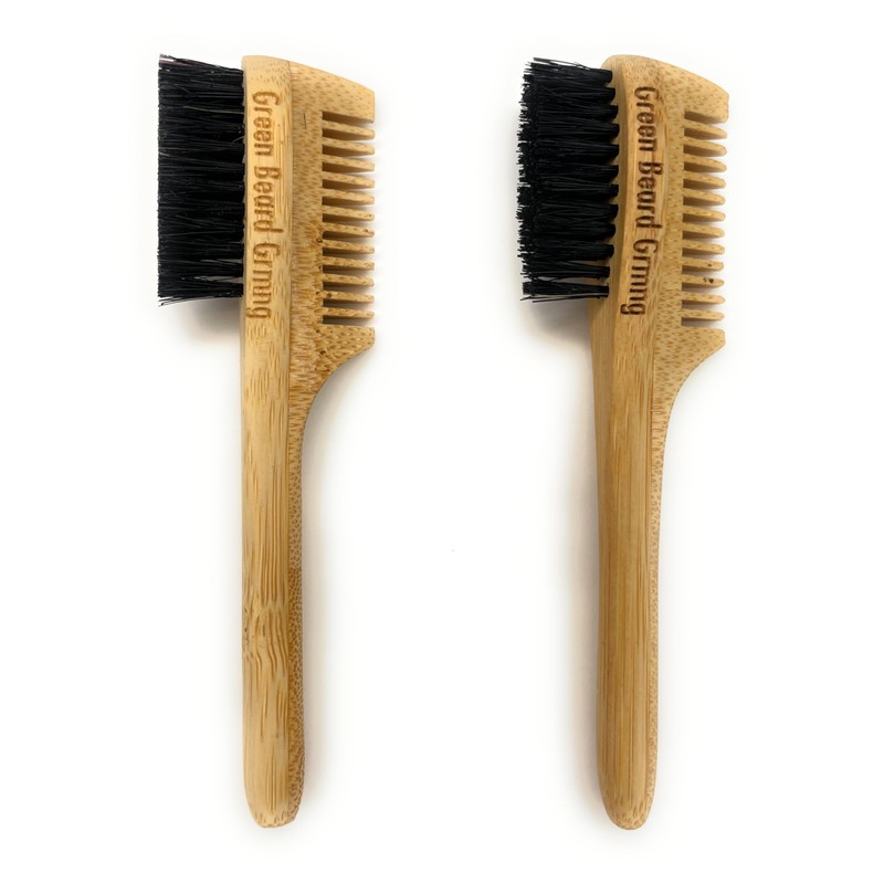 2-in-1 Pocket Sapling Mustache Brush & Comb (2-Pack) from Green Beard Grmng - Boar Bristle & Bamboo