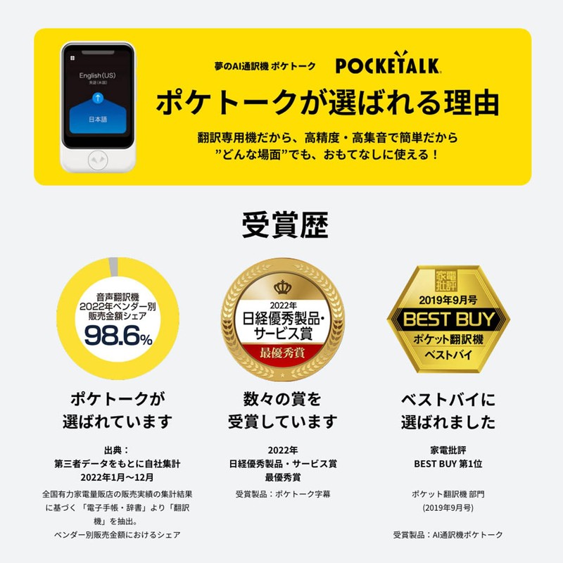 - You will receive "POCKETALK W". POCKETALK is an AI translator that allows people who can't speak each other to interact with their own language