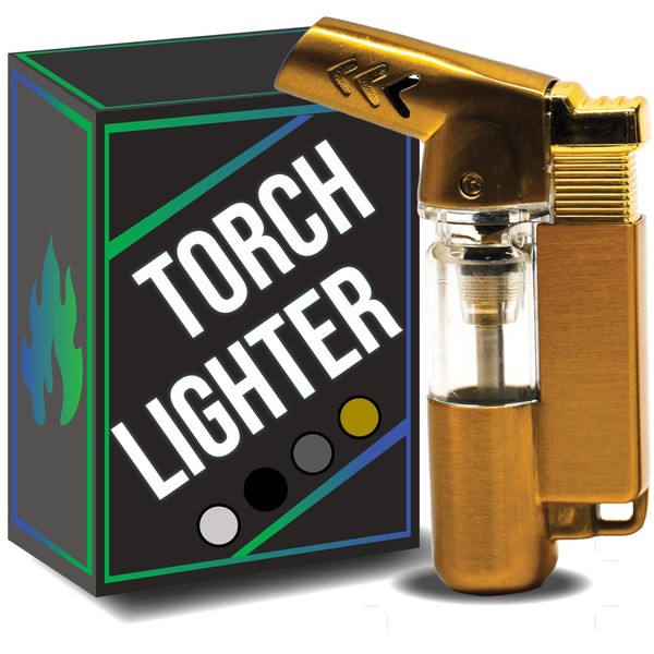 Pocket Torch Lighter with Clear Reservoir - Refillable, Multi-Color Options, Adjustable Flame for Outdoor and Everyday Use - Gold