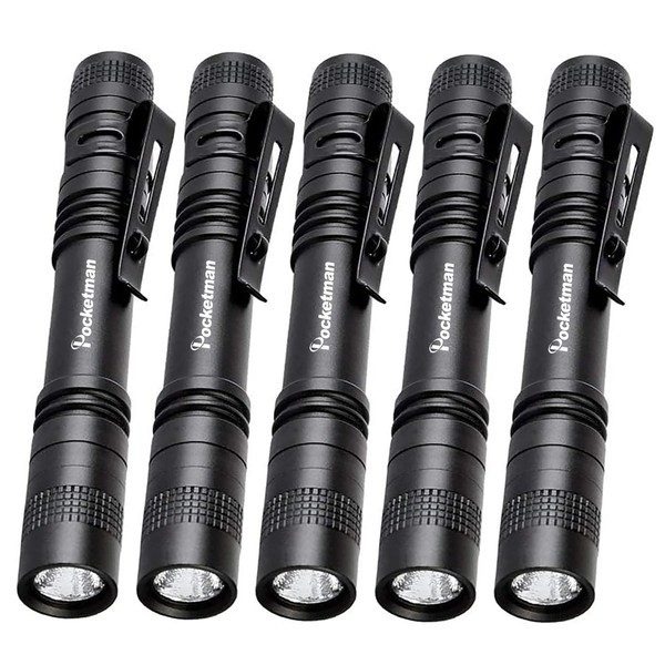 POCKETMAN LED Penlight Flashlight Tactical Torch Small Flashlight Pocket-Size Pen Flashlight with Clip for Lighting (5 Pack)