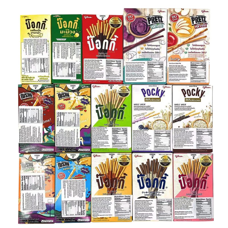 - Pocky Selections: Most Popular flavors such as Chco, Strawberry, Cookie & Cream, Green Tea, Almond, Blueberry Yogurt, Wholesome Banana, Mango