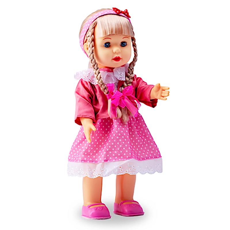 - Sonic control interactive walking doll with blonde braid; Doll will sing, talk and walk when you clap hands twice, or press her chest