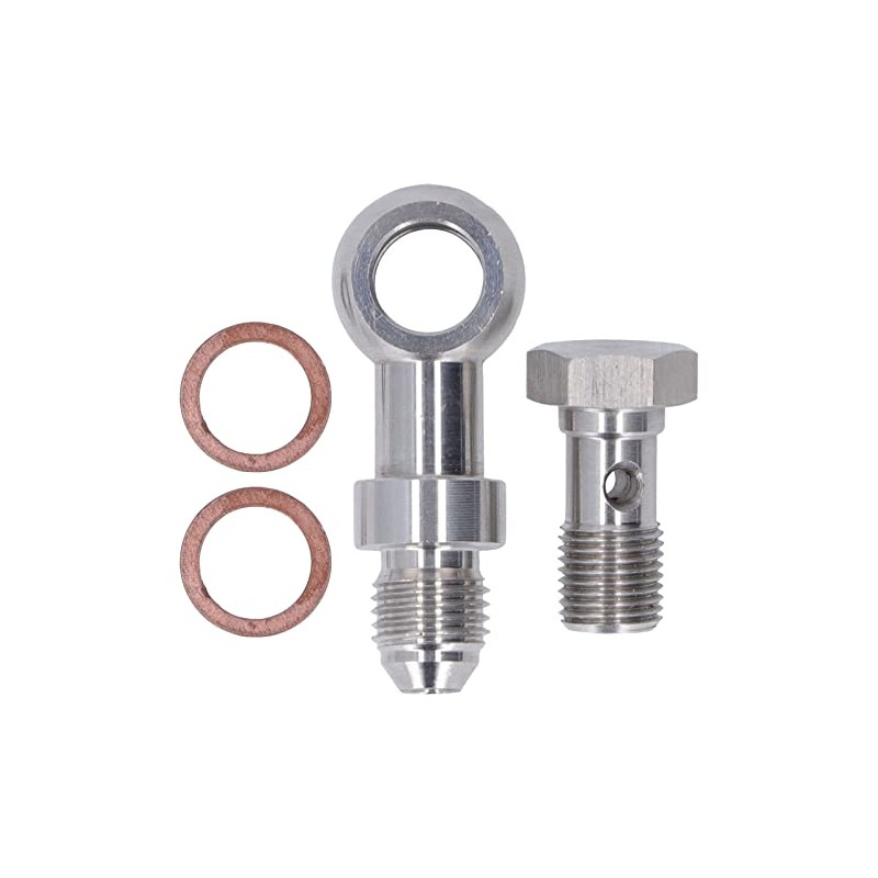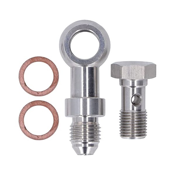 - Contenido completo del paquete: Este kit incluye todo lo necesario para la instalación, incluyendo un adaptador banjo de 4AN a 10 mm, un perno banjo M10 x 1,25 mm y dos arandelas de 10 mm de diámetro exterior. Este paquete todo en agiliza el proceso de instalación y garantiza la compatibilidad con su vehículo.