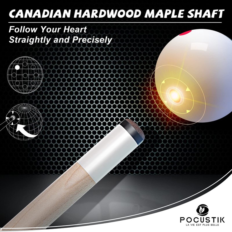 POCUSTIK Pool Cue, 58" 2-Piece Pool Stick for Adults,Ergonomic Canadian Maple...