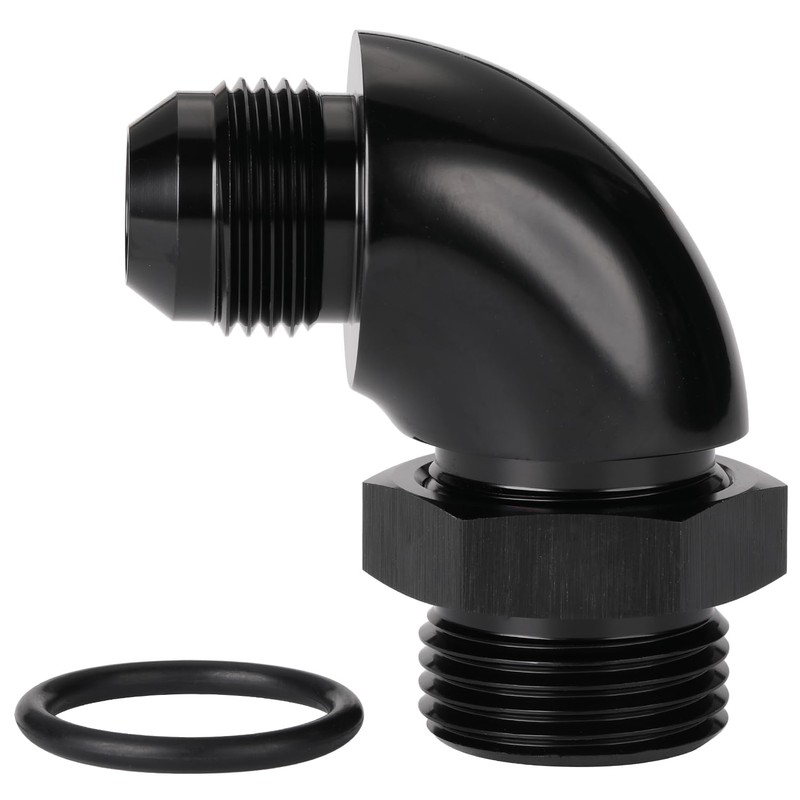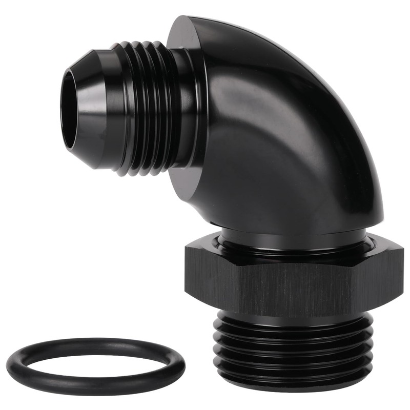 - Thread size: AN10 male flare to -12 ORB O-ring boss, 90 degree full flow bend