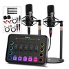 Podcast Equipment Bundle for 2, Audio Interface with XLR Condenser Microphone, and 3.5mm Mic,RGB, Bluetooth, Mute,48V Phantom Power for Streaming,Gaming,Recording-Black