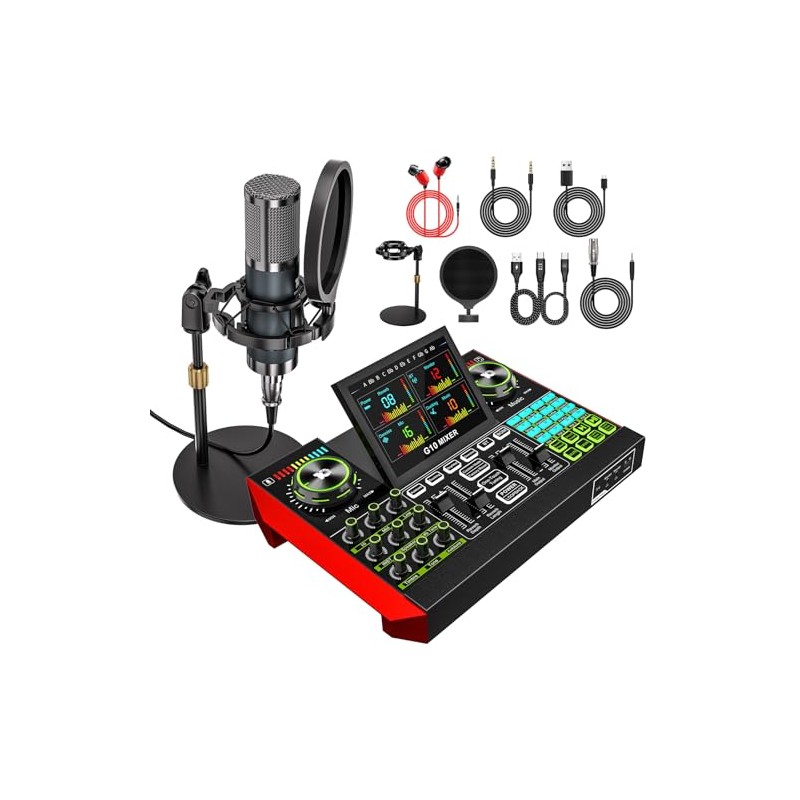 - [Strong compatibility]--The DJ mixer can support smartphones, PC, PlayStation (PS4, Xbox...), etc. It can be compatible with Windows, Android, Mac OS, Chrome OS, etc. Also, the soundboard can be used on OBS, Audacity,iMovie, etc. This podcast equipment kit meets the use of most scenes. Free drive, plug and play.