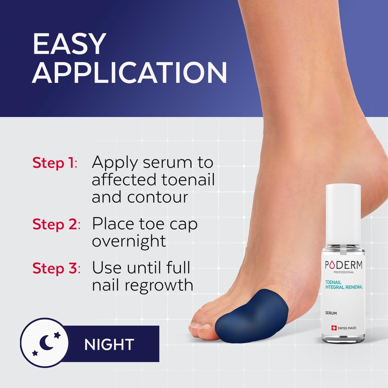PODERM FUNGAL NAIL NIGHT RENEWAL - Podiatrist-developed 8h Intensive Treatment + Protective Cap - Targets The 5 Signs Of Fungal Toenail Damage While You Sleep - Improves Appearance - Accelerates Renewal - Prevents Contagion