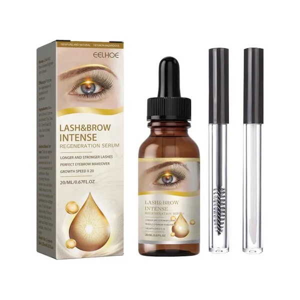 Poderosa regeneración de pestañas y cejas, 20 ml, oscuras y gruesas, con pestañas rizadas que son naturales