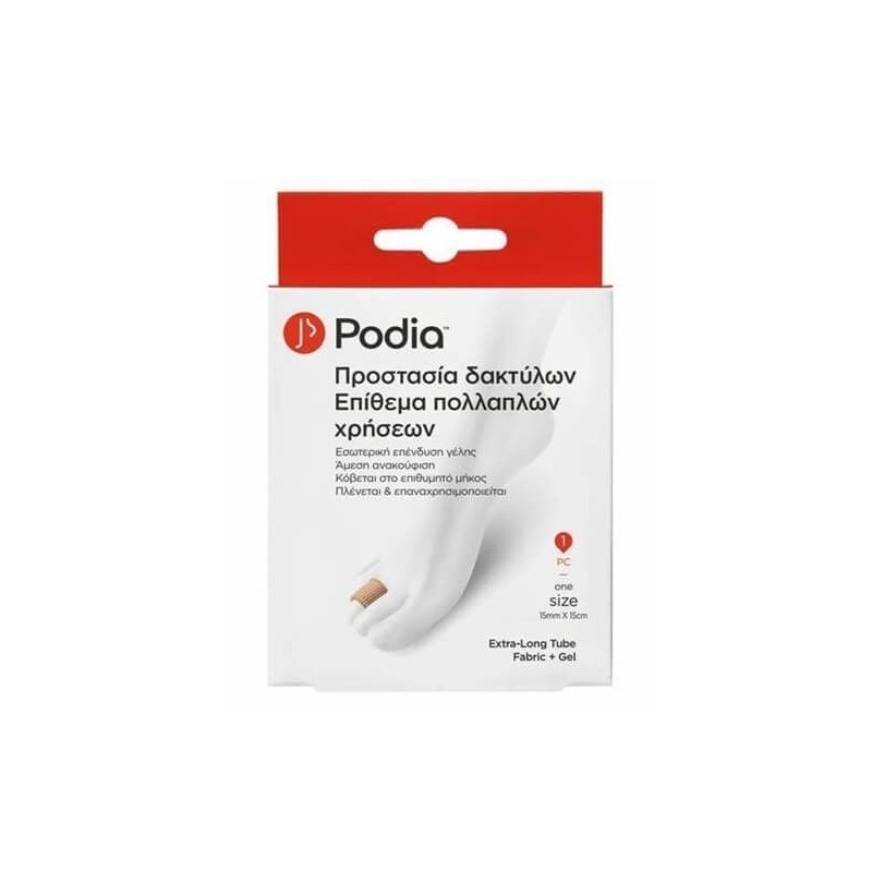 The Podia Extra-Long Tube Fabric + Gel One Size 15 mm x 15 cm is specially designed to protect the toes from daily strains.