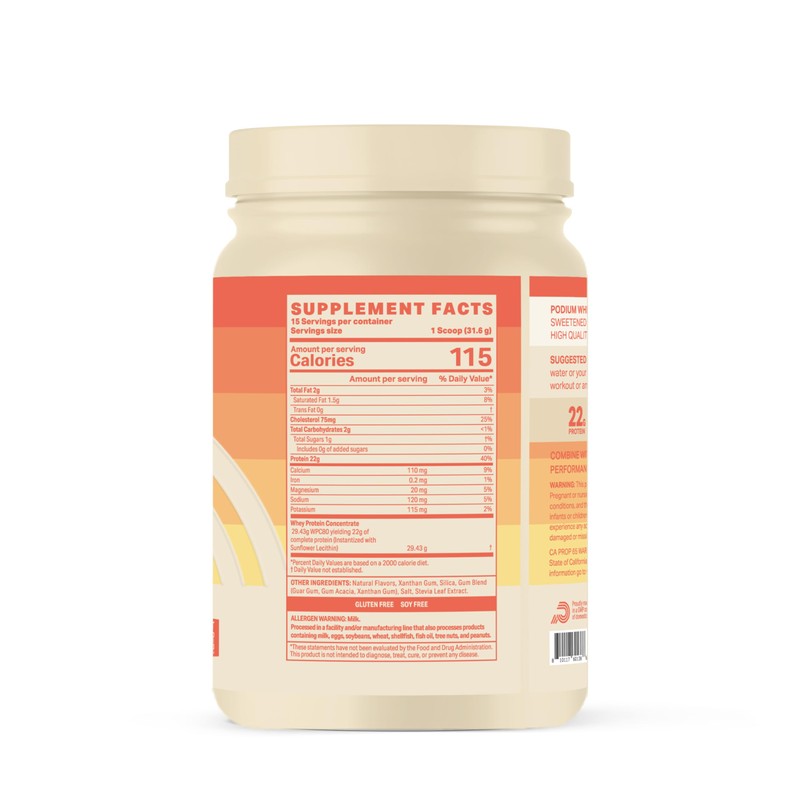 - SUPPORTS LEAN MUSCLE MASS: Podium Nutrition whey protein powder contains 22g grams of protein per serving to help support lean muscle mass. Each serving of this low carb protein powder drink contains only 120-150 calories, zero added sugar, and only 2-6g of carbs. Keto friendly, low sugar, gluten free, soy free, and great tasting.