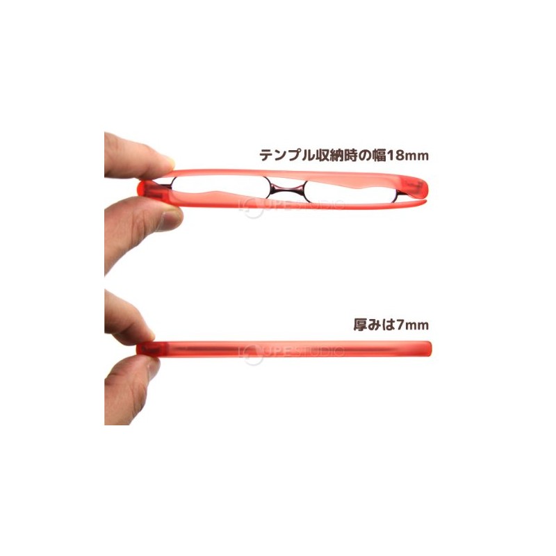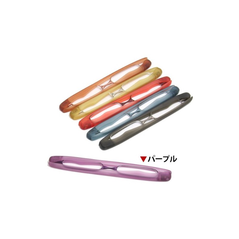 - 商品名:携帯用シニアグラスポッドリーダー 商品番号:MR-POD-PU カラー:パープル サイズ:・顔幅130mm・テンプルの長さ130mm・レンズサイズ13mmx45mm・重さ約12g