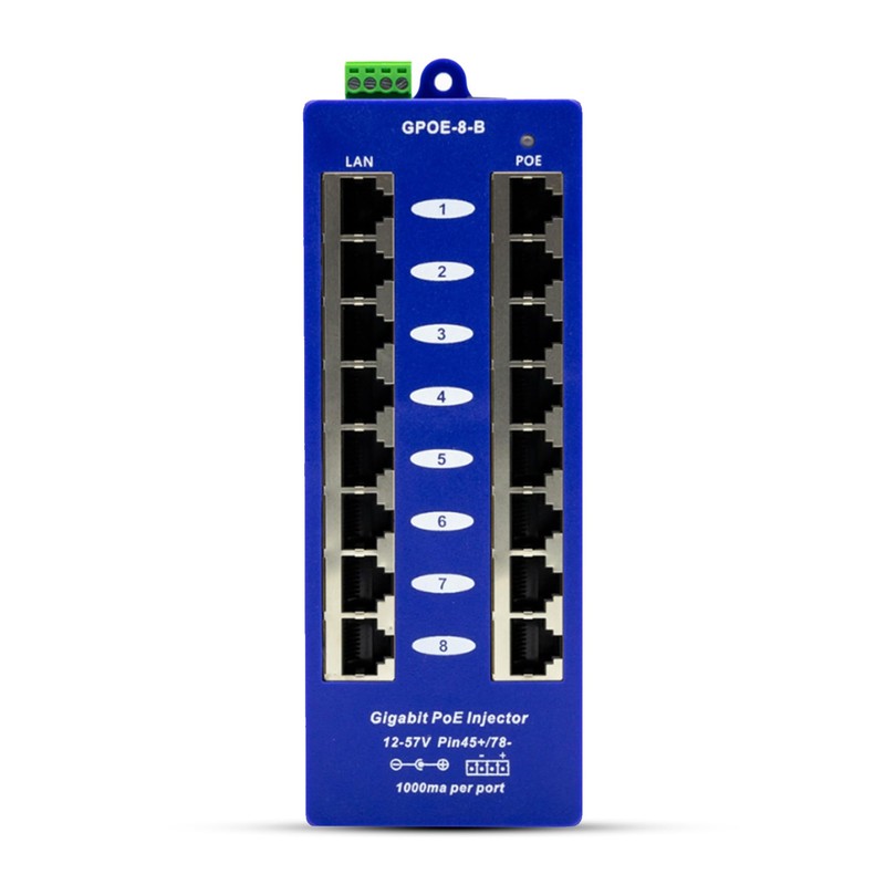 PoE Texas GPOE-8B - 8 Port PoE Injector - Gigabit Passive Mode B Power Over Ethernet Injector for Ubiquiti, Mikrotik & More - Add PoE to A Non-PoE Switch - 24v, 48v or 56v Power Supply Sold Separately
