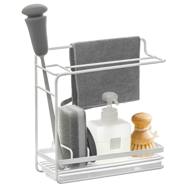 This simple yet functional sink caddy is great for storing sponge, hand soap, towel and more.