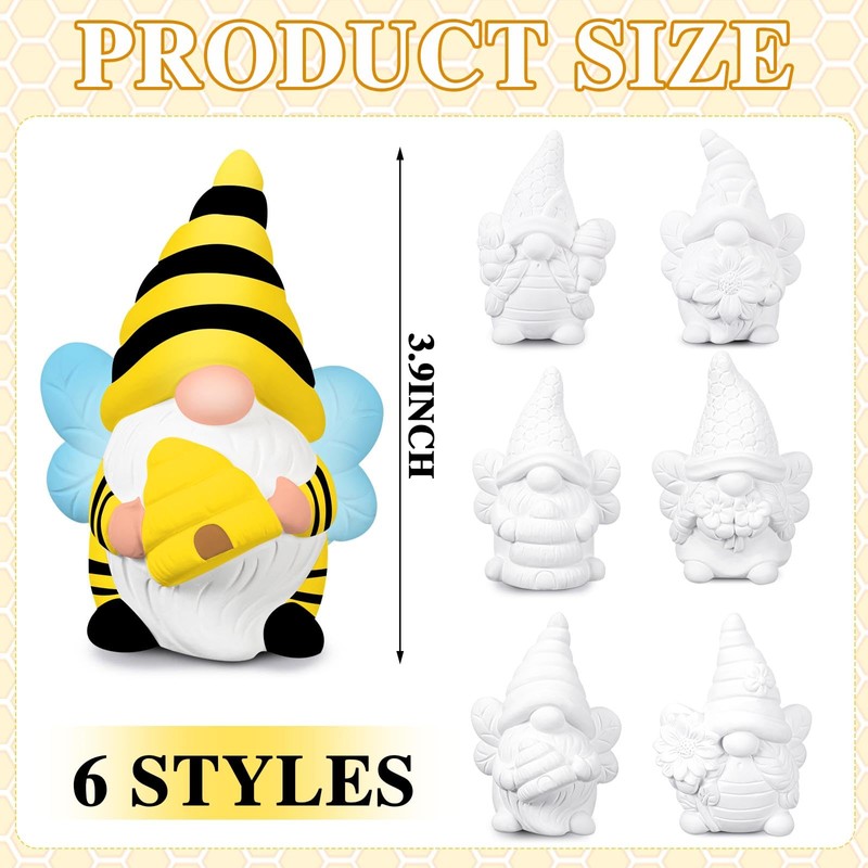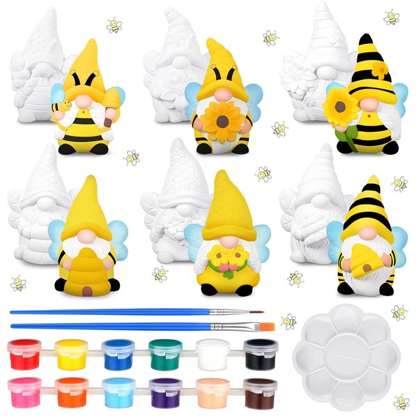 Poen 6 Sets Ready to Paint Your Own Gnome Statues DIY Ceramics Bee Gnomes Set...