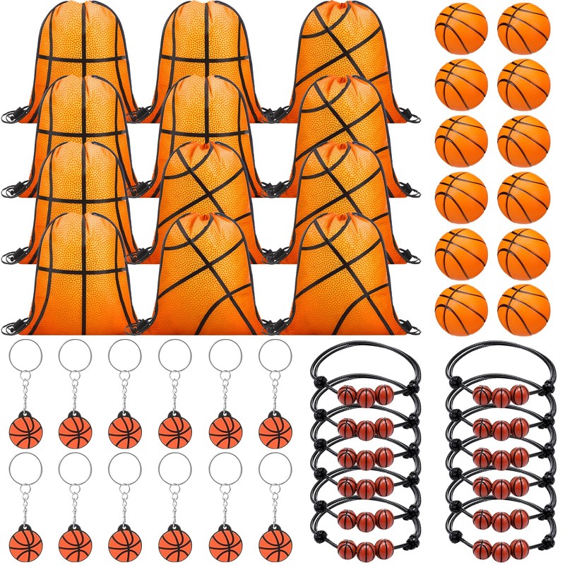 - Package Content: the basketball party favors set includes 12 basketball drawstring backpacks, 12 mini softballs, 12 basketball keychains, 12 basketball wax thread braided bracelets; Rich in quantity and style, enough to meet your daily using needs and can also be shared with members of your team and show the team style