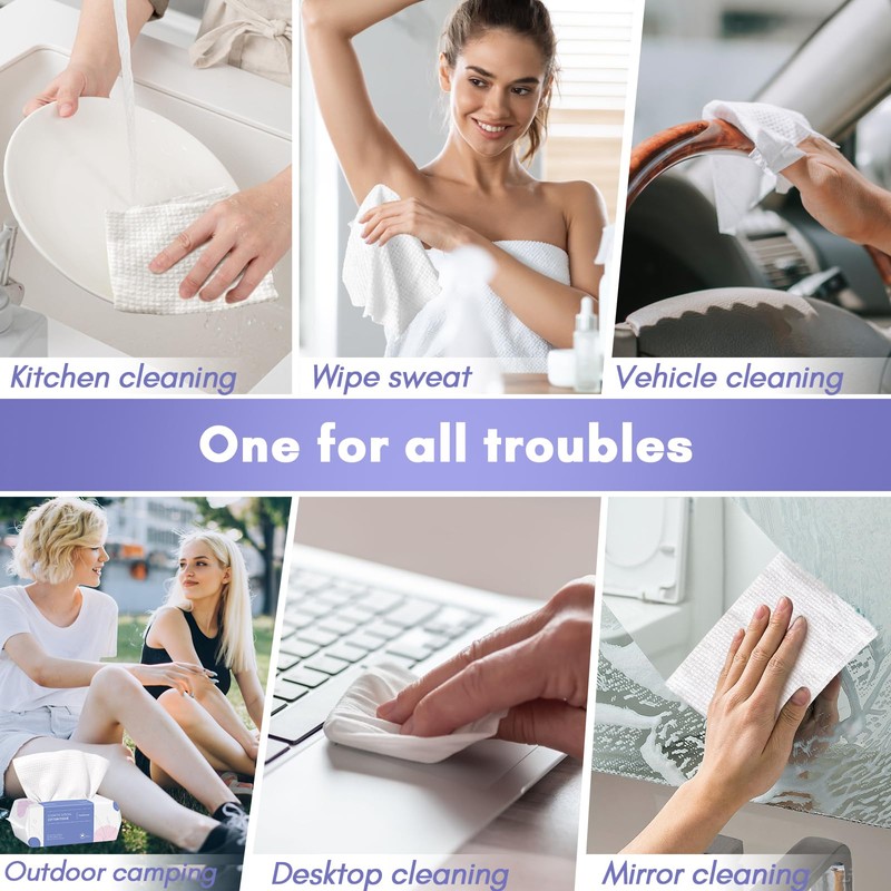 - 🌱 VERSÁTILES: Ideales para la limpieza facial diaria, secar el rostro después de lavarlo, retirar mascarillas de barro, hacer mascarillas caseras con crema hidratante, limpiar la cocina, limpiar encimeras y limpiar el coche, etc. Tamaño 7.9" x 7.9" (20x20CM), hasta 80 hojas por paquete, duran mucho tiempo.