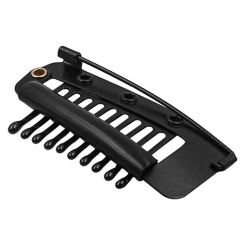 POFET 10 Pieces Hair Chunni Clips with Safety Pin 10 Teeth Stainless Steel Wig Clips Dupatta Clips Wig Clips U Shape Metal Clips (Black)