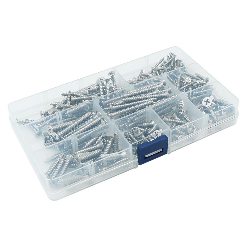 This stainless steel assorted screw set contains 265 high-quality screws in different sizes, making it perfect for all your homemade, repair, and woodworking projects. These screws are made of high-quality 304 stainless steel, which is corrosion-resistant and durable, ensuring long-lasting performance. The deep thread design provides excellent retention in different materials, making it ideal for a wide range of applications. Fitted with a handy storage box with compartments for easy organising, the set is a must-have for any DIY enthusiast. In addition, these screws meet ROSH safety and environmental standards, giving you peace of mind when working on your project. Upgrade your toolbox with this versatile screw set and tackle any project with confidence.