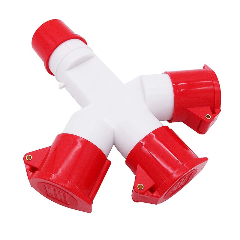 POFET Multifunctional Industrial Socket 16 Amp 4P IP44 380V 3 Way Mains Hookup Splitter-Red