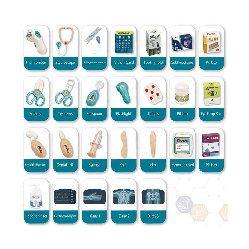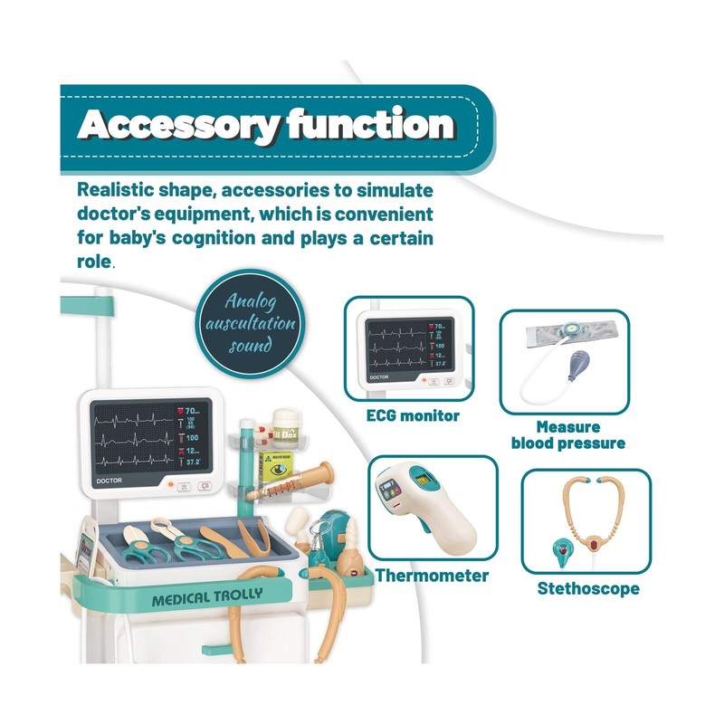- Mobile medical cart: Children can do "medical check-ups" for family members or friends through a wheeled medical cart.
