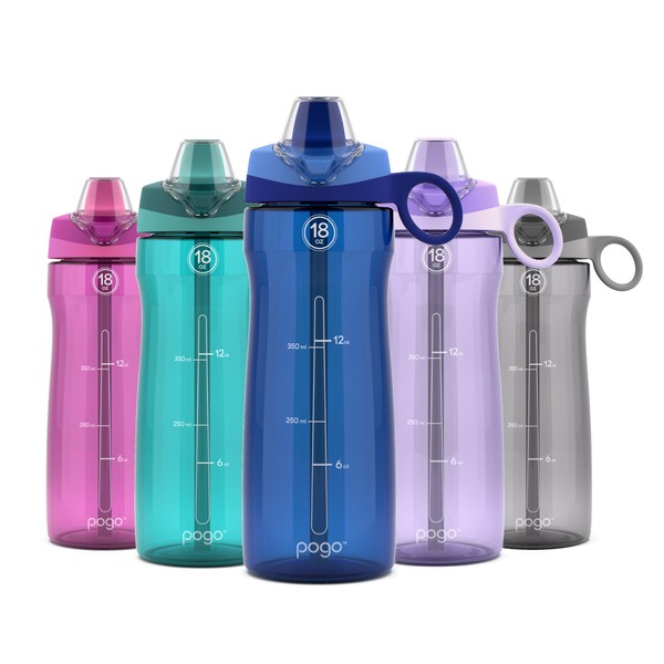 Pogo BPA-Free Tritan Plastic Water Bottle with Soft Straw Lid, 18 Oz, Blue