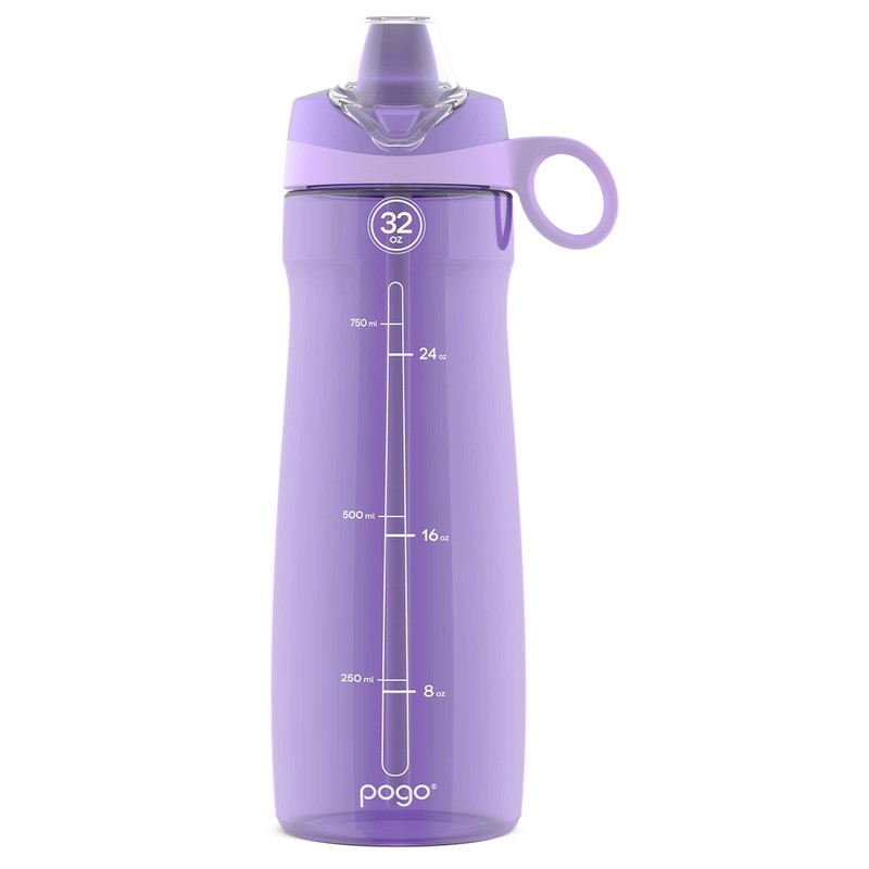 Pogo BPA-Free Tritan Plastic Water Bottle with Soft Straw, 32 Oz, Lilac