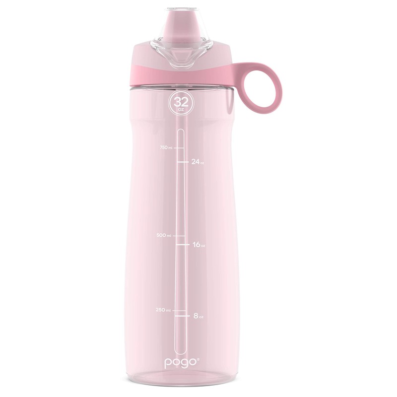 Pogo BPA-Free Tritan Plastic Water Bottle with Soft Straw, 32 Oz, Pink Satin