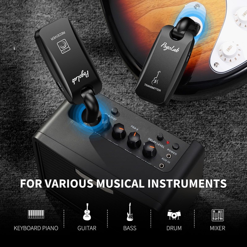- ❤CLEAR SIGNAL TRANSMISSION --- Based on 5.8GHz uncompressed signal, POGOLAB guitar wireless system clear sound almost at no latency as like using a guitar cable. Stronger anti-interference ability, less than 5ms delay, effective range of about 100 feet, high-quality restoration of the original guitar sound.