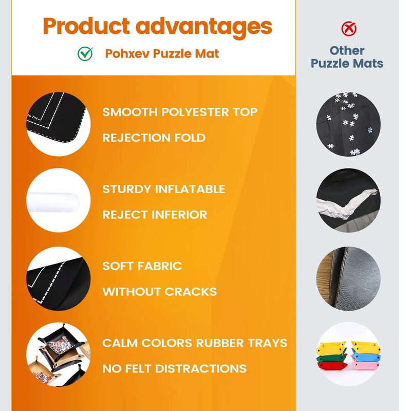 - Pohxev Jigsaw Puzzle Mat Roll Up, 49” x 36” 3000 2000 1500 Pieces, Roll-Up Puzzle Mats Save Pad with 6 Leather Sorting Trays & 1 Storage Bag. Sheets and Frame Keeper Accessories for Adults